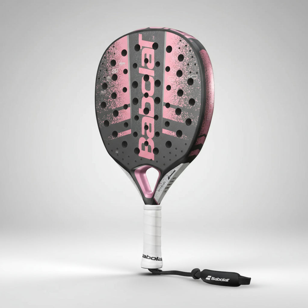 - Micro Perf: una innovadora tecnología patentada por Babolat que presenta microperforaciones en la superficie de la pala haciéndola más ligera y dándole un punto dulce más amplio.